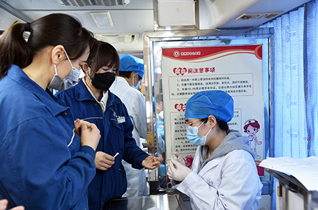 獻(xiàn)血隊伍中,既有工作多年的老同志,也有剛剛參加工作的新員工。獻(xiàn)血車就位后,員工在濱州市中心血站工作人員的指導(dǎo)下,認(rèn)真填寫獻(xiàn)血登記表、測量血壓、抽血化驗,經(jīng)血液檢驗合格后開始獻(xiàn)血。“我參加無償獻(xiàn)血的初衷,就是想盡自己的一點力量。”在場參與獻(xiàn)血的一名員工說到。簡單的一句話,展現(xiàn)的卻是充滿溫暖情感的無私之愛。