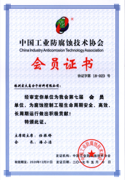 中國工業(yè)防腐蝕技術(shù)協(xié)會會員證書
