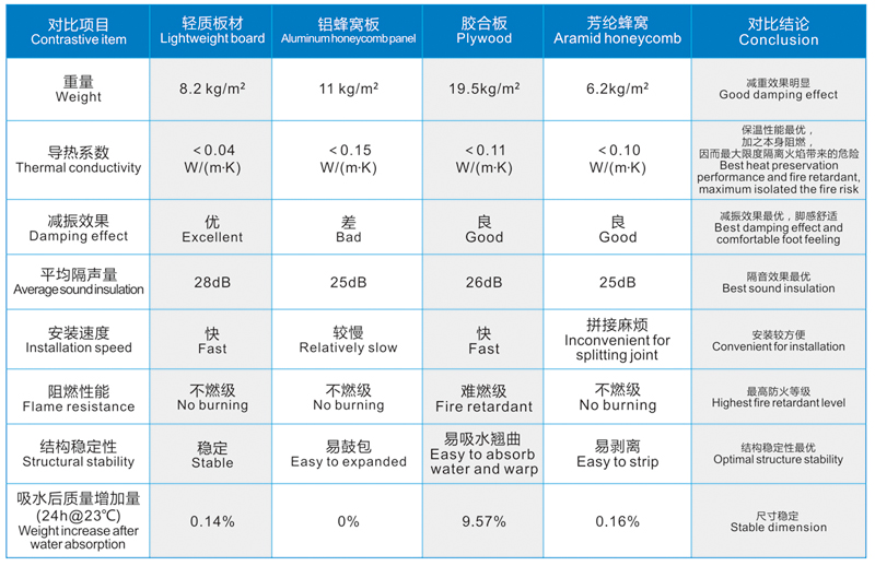 輕質(zhì)板材與常見材料的對比: