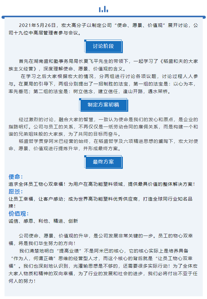 升華使命、愿景、價值觀,為員工物心雙幸福而奮斗!
