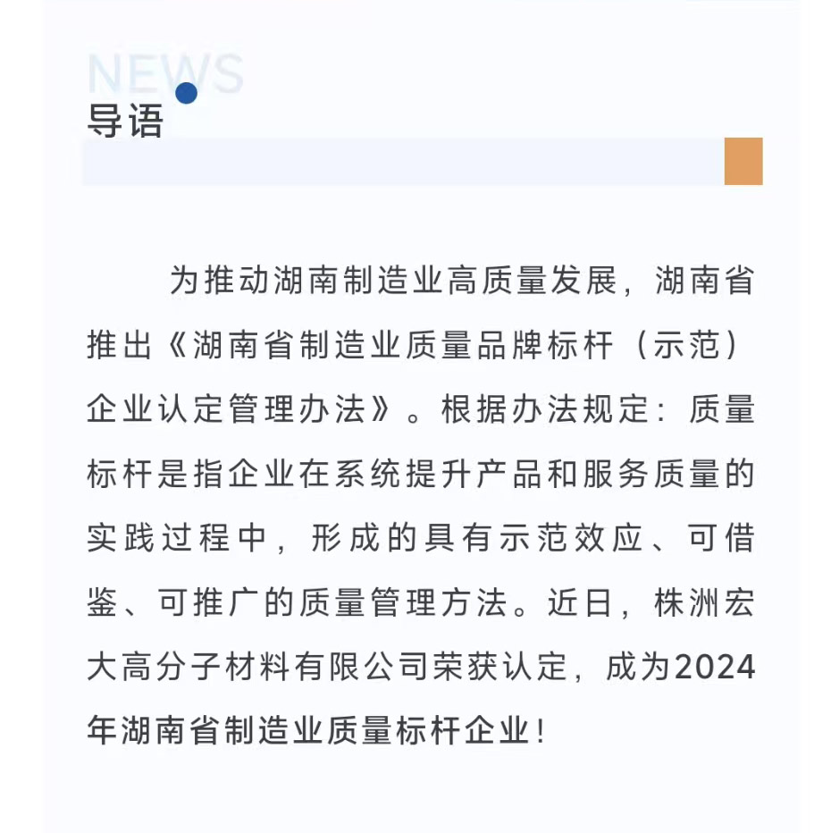 喜報(bào)|2024湖南省制造業(yè)質(zhì)量標(biāo)桿企業(yè):宏大高分子再獲認(rèn)證!