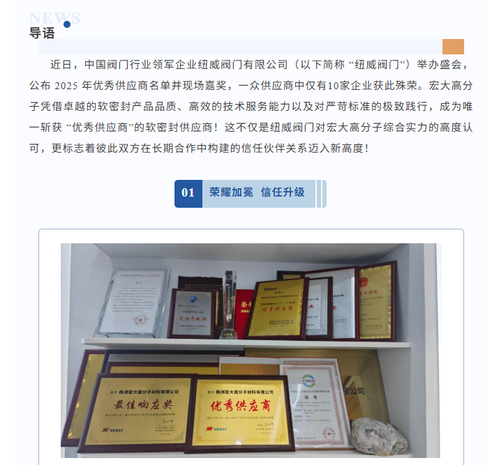 喜報(bào)|熱烈祝賀宏大高分子榮獲紐威優(yōu)秀供應(yīng)商